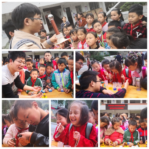 10月26日,中国科学院光电技术研究所在读硕博士研究生一行20人来到位于泸州叙永县的白腊苗族乡中心校,为当地苗族孩子们带来系列有趣的科学实验,并挂牌成立“光电科技趣味馆”。