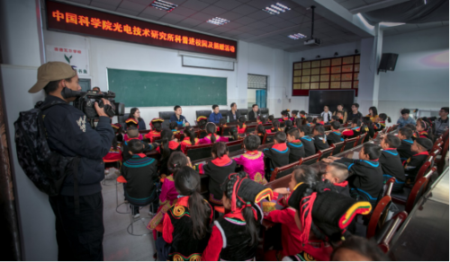 11月5日,中国科学院光电技术研究所18位在读博士硕士研究生来到大凉山的喜德瓦尔彝族学校,举办“科学牵手未来”科普进校园活动,捐赠建立“光电趣味馆”,并与100余位彝族孩子互动,开展有趣的科学实验。