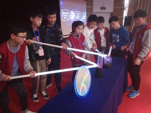 同学们聆听了阳光科学社志愿者李雅琴带来的科普报告“人造太阳——人类未来终极能源”,了解磁约束可控核聚变的基本原理。在观看相关科普视频后,同学们参与“等离子体光剑”的科学实验。同学们来到EAST控制大厅,观摩EAST实验人员远程操控EAST实验的场景;在志愿者的带领下,了解EAST的内部构造、托卡马克的研究历史。