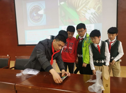 合肥智能机械研究所副研究员王慧、应用技术研究所研究员陈林分别以《人工智能及意念控制的神奇力量》和《神奇的材料》为题,介绍了相关科学知识。强磁场科学中心副研究员朱相德和等离子体物理研究所博士张素贞分别以《神奇的强磁场》和《来自未来的人造太阳》为题,将科学岛的两个大科学装置的相关科学知识带给同学们。朱相德以“什么是磁场”引起孩子们的兴趣,引导孩子们去思考、去发现,并介绍了磁体以及磁场在生活和科学中的广泛应用。在讲解电源和磁场的关系时,孩子们上台模拟、感受、体验电磁炮。张素贞用图片和相关视频,介绍了“人造太阳”研究背景、研究内容和现阶段取得的成果;使用仪器为同学们演示“等离子体光剑”实验。王慧通过开场小实验《意念控制荷花盛开》点燃师生们的热情。通过图片、视频与真实的事例,讲解机器人与人工智能的区别、意念在机器人世界中的神奇力量以及近年来研究小组在脑-机接口领域取得的最新研究成果。为使师生们更直观地感受意念控制的神奇,借助脑电波测量仪“意念耳机”,开展互动环节,在虚拟界面中对耳机佩戴者进行放松度及注意力专注度训练。陈林通过图文形式,介绍了材料的发展历史和最新的研发成果,科学故事和科学精神吸引了全场学生,获得阵阵掌声。