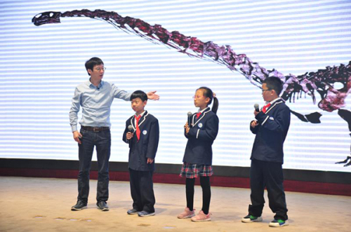 此外,中国古动物馆馆长王原为太原师范学院附属中学、太原市童乐双语学校、太原市实验小学近300位师生作了题为《中国的恐龙》的科普报告。