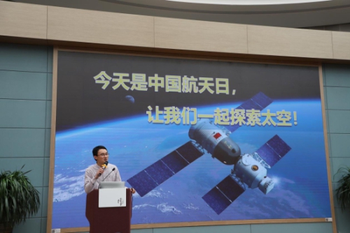 长春光机所党委办公室副主任周立勋为同学们送上了主题为“太空探索”的科普报告。报告介绍了“中国航天日”的由来和意义、探索太空的历程、伟大航天精神以及长春光机所在航天方面做出的突出贡献。精彩的内容,生动的讲解,使同学们被航天科技的魅力深深吸引。在互动环节,同学们提出一个又一个“奇妙”问题,此次活动激发了同学们对浩瀚宇宙的兴趣。此外,周立勋带领同学们参观了“吉林一号”卫星、“天宫一号”高光谱成像仪、“天绘一号”测绘相机等实物模型。