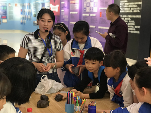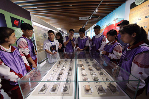 在Ar-Ar年代学实验室、稀有气体质谱实验室、场发射扫描电镜实验室等实验场所,大家看到了各类实验仪器设备,了解地球化学学科的研究内容。此外,在矿物岩石陈列馆,大家近距离接触上千种矿物、岩石、矿石,以及陨石、月球土壤等标本。由科研人员、职工和研究生组成的志愿者耐心讲解和示范,揭示了地球化学的奥妙。