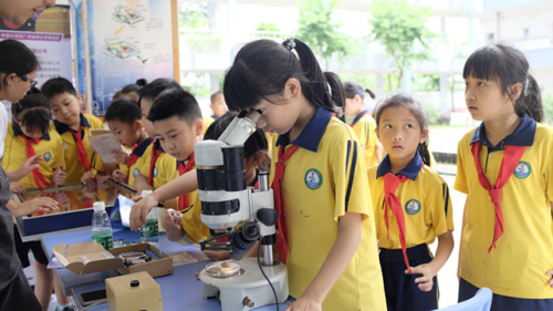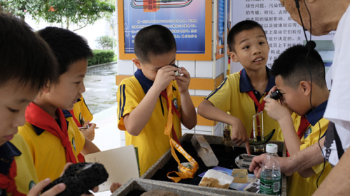 5月17日,中国科学院广州地球化学研究所地学与资源科普基地流动展馆来到广州市黄埔区九龙第二小学,参加第4届校园科技节。