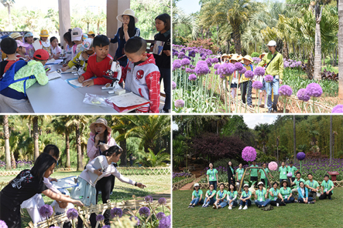 昆明植物园举办多场科普活动。“郁郁葱葱”纸艺手作课互动活动中,由手工老师现场教学,大家共同制作完成一株高2.1m的纸艺大葱花,花序由160支花朵组成;西南联大研究院附属小学的同学们参加葱属植物主题科普活动,到中乌全球葱园(昆明中心)认识并观察葱属植物,了解葱属植物的分布、利用和多样性等科学文化知识,并制作手工皂;开展“葱花朵朵开——自然笔记体验课”、“葱葱显微大发现”活动。科普活动内容设置与学校生物课结合,同学们认识了宏观生活中和微观世界中的多种葱属植物,并在自然笔记中记录下其特征习性。