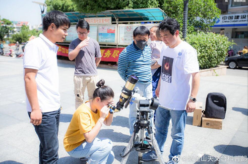江苏南京:5月18日和5月23日,在紫金山园区开展观测太阳的活动,介绍太阳的相关知识、紫金山天文台太阳研究及我国第一颗太阳观测卫星(先进天基太阳天文台(ASO-S)卫星)的最新进展、日珥镜的工作原理及使用方法,并指导游客利用日珥镜观察太阳色球层、太阳黑子、暗条和日珥等,学习太阳知识和最新科研进展。