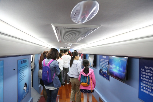 科学节推出了“三车进校园”特色科普内容,三车分别为中科院“科学快车”、吉林省科普大篷车以及长春中国光学科学技术馆科普车。“科学快车”将“墨子号”、“中国天眼”等中科院创新科技成果转化为科普展品集中呈现,同学们以沉浸式体验的方式领略了中科院近年来在深空、深海、深地、深蓝、生命科学、农业生态、大科学装置等领域的科研进展。