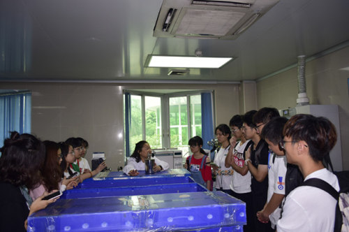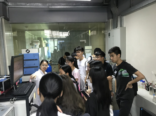 活动的第二课是走进有机地球化学国家重点实验室,与一线科研人员面对面交流。在大型室内烟雾舱和VOC(挥发性有机物)实验室,同学们近距离接触到大型高端科研仪器与实验平台,初步了解了实验原理与实验操作流程,学习了雾霾的形成原理与治理机制,以及在大气中含量极低但十分活跃的VOC是如何被探测被收集被储存以及被用于科学研究的,通过实验室参观学习环节,同学们表示对大气环境科学有了更全面的认识,并对环境科学专业有了更多的期待与信心。