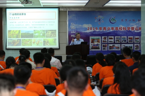 成都山地所相关负责人对同学们的到来表示欢迎,鼓励同学们主动参与、积极探索、勇于实践、大胆创新,用心体验山地科学研究的魅力和科技创新的力量,深入了解和体验山地科学研究的全过程,积极培养科学的思维和方法,不断增强创新意识,进一步提升探索实践能力。此次山地专题营邀请了成都山地所研究员、国际欧亚科学院院士邓伟作了题为“山地——神奇的空间、重要的国土”的主题报告。