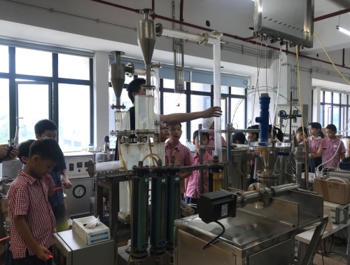 同学们参观了废弃物处理与资源化利用研究室。研究室的老师讲解了污水的来源及处理方式,带领同学们认识实验室装置如流化床、马弗炉、干燥箱等,并指导同学们通过显微镜观察污水中的微生物,使同学们初次体验了微观世界。