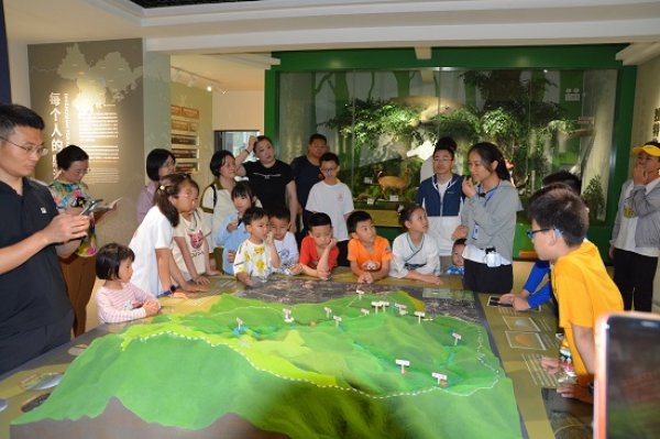 在工作人员的带领下,大家参观了自然教育展览室,认识了鼎湖山的黄花大苞姜、版纳鱼螈、白鹇等“明星”物种,了解了保护区的历史和现状,从科学的角度“看见”了不一样的鼎湖山。