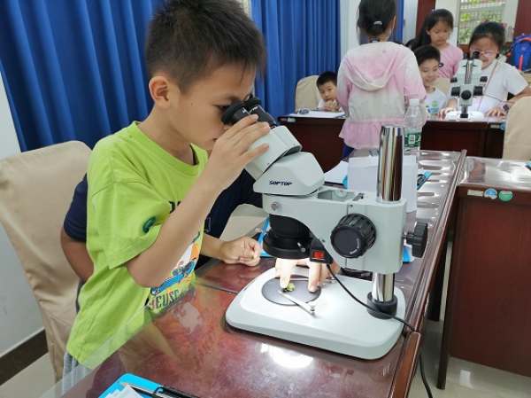 同学们跟随保护区工作人员走进森林鸟类世界,透过望远镜观察了赤红山椒鸟、红耳鹎、白头鹎、白鹡鸰等鸟类,并了解了这些鸟类的主要识别特征。