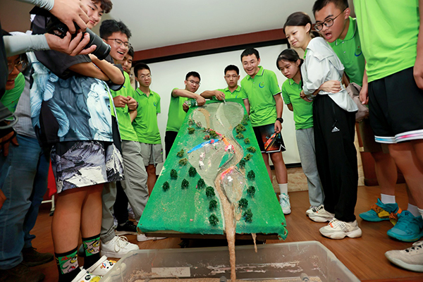 在科研实践环节,营员们参与了“泥石流灾害课题”和“无人机与低空遥感技术课题”科学小实验。在“泥石流灾害课题”科学小实验课堂,科学导师介绍了泥石流的成灾方式、近年来典型的泥石流事件以及泥石流综合治理工程,并通过动画短片演示了泥石流灾害的危害性以及正确的逃生方式。营员分组开展了泥石流灾害防治工程小实验,通过对防治工程的防治效果进行检验,对防治工程如何发挥作用有了更深的理解。在“无人机与低空遥感技术课题”科学小实验课堂,科学导师介绍了无人机遥感的原理、特点以及应用实例,带领营员动手完成了小型木质模型飞机的拼装,并现场进行试飞分享。通过参与科学实践活动,营员们学习了科学的思维方法,体验了如何将理论应用于实践的过程,锻炼了动手能力,激发了对山地科学的兴趣。
