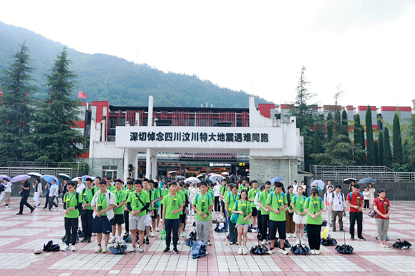 在特色活动中,同学们实地参观汶川特大地震震中纪念馆、漩口中学地震遗址。