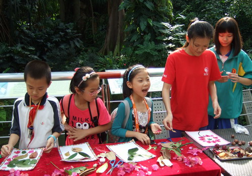 华南植物园科普讲解员王喆带领小记者们参观游览了温室群景区、龙洞琪林景观及木兰园、姜园、兰园、苏铁园等专类园,并重点讲解神秘果、两面针、跳舞草、含羞草等各种有趣的植物及生物现象。华南植物园植物学专家陈忠毅老先生现场为小记者们讲解了姜园的景观设计理念、姜目八大科植物知识并接受采访,回答了小记者们提出的有关植物保护及环境保护方面的问题。随后,在科普指导老师陈银洁的引导下,小记者们利用在植物园内捡到的落叶、落花和果实等,发挥想象进行了自然创作,色彩鲜艳、栩栩如生的小兔子、蝴蝶、花草树木等跃然纸上,小朋友们兴奋地在镜头前展示自己的作品。