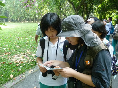 走出课室,来到美丽的大自然中,同学们就像出笼的小鸟。天空中,大树上,丛林里,草坪上,都有同学们的发现所获。有的队伍发现成群的叉尾太阳鸟,有的队伍还观察到翱翔在天空中的猛禽。透过望远镜,同学们不仅发现了鸟儿,还发现了很多昆虫的有趣活动,秀美大自然的画面让同学们深陷其中。大家在两个小时的观察中记录下了20多种鸟类,收获颇丰。