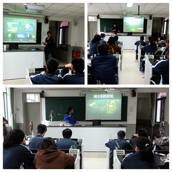 感受和体验了有趣的光反应后,黄汉初进一步为同学们介绍了光化学在生物体内的最新进展:绿色荧光蛋白和光控离子通道。绿色荧光蛋白曾获得2008年诺贝尔奖,如今它的各种变体在生物体内探针标记等领域起到了重要作用。光控离子通道曾为自然杂志评选为2010年的年度技术,讲到电影《黑衣人3》中的闪光灯清空记忆,同学们都觉得很科幻,然而目前科学家已经实现了运用光来调控动物行为,看到视频中蓝光使得本来正常走动的小鼠在不停的转圈跑,黄灯使得在扭动的蚯蚓停止扭动,大家纷纷惊叹于科学的神奇与伟大。