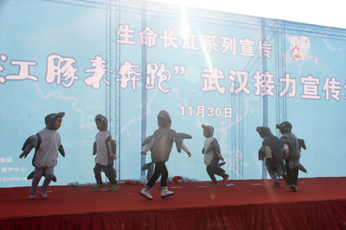“为江豚来奔跑——2013长跑接力与宣传”活动是经农业部长江渔业资源管理委员会同意,世界自然基金会(WWF)和武汉白鳍豚保护基金会(WBCF)发起在长江中下游开展的一项公益活动,旨在长江流域掀起保护长江、挽救江豚的舆论高潮,引起全流域公众关注生命长江的保护工作。活动首站于11月17日在湖北黄石启动,曹文宣院士为首站起跑助阵。武汉站为本次活动的第八站。在此后的一个多月时间里,活动将陆续在湖北、湖南、江西、安徽、江苏、上海等6省市17个地市和自然保护区开展。