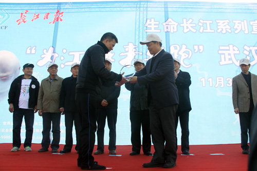 11月30日,由世界自然基金会(WWF)和武汉白鳍豚保护基金会(WBCF)发起并主办的“为江豚来奔跑——2013长跑接力与宣传”系列活动武汉站在汉口江滩举行。中国科学院水生生物研究所党委书记、副所长胡征宇,水生所白鱀豚馆馆长赵庆中等出席了启动仪式。