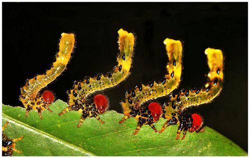 叶蜂幼虫表演集体倒立