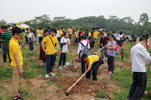 科普讲堂上,邹丽娟老师主讲的《华南地区濒危植物》科普知识讲座带领大家一同领略那少为人知的濒危植物世界,分析其中的濒危原因及保护价值,从现有的濒危植物引种回归的方法和技术出发,商讨制定切实可行的保护措施。随后的系列生态科普互动体验中,穗港学生一一配对,共同完成了林中寻宝、叶片宝贝形态甄别、专类园大揭秘等科普活动项目。在科普辅导员的生动讲解中,同学们在温室群景区进行“世界植物大课堂”的学习。最后,伴着蒙蒙小雨,同学们集体动手植树,合力种下了“穗港生态考察之旅”的友好林,为此次生态考察之旅画下了完美句号。