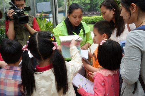 科普课堂包括课堂讲解和户外探究两个环节。课堂上,李俊皞老师通过PPT向孩子们介绍了有关花的植物学知识,透过“花的基本结构”、“辨别雄蕊与雌蕊的方法”、“蜂引蝶的广告方式”三个板块和“无花果与榕小蜂”的故事,让孩子深刻的感受到了植物世界的神奇。