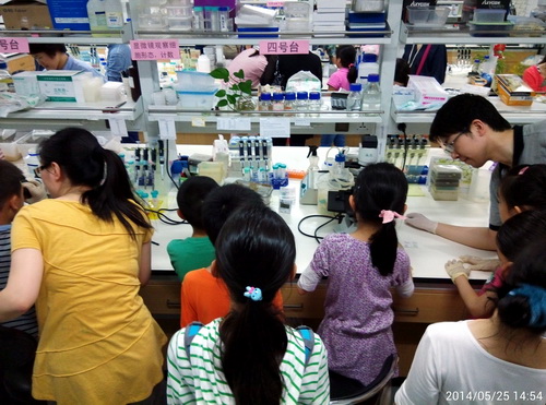 为传播生命科学知识、提升公众科学素养、营造全社会关注科研的良好氛围,在中国细胞生物学学会细胞生物学教学与普及工作委员会的倡议下,上海市细胞生物学学会、上海市科技艺术教育中心合作于5月24日至25日联合举办中国细胞生物学学会2014年上海“实验室开放日”活动。中国科学院上海巴斯德研究所分子病毒学课题组和分子免疫课题组积极参与了此次活动,并围绕“科技创新、助力圆梦”这一主题精心准备了一系列妙趣横生的科普活动。