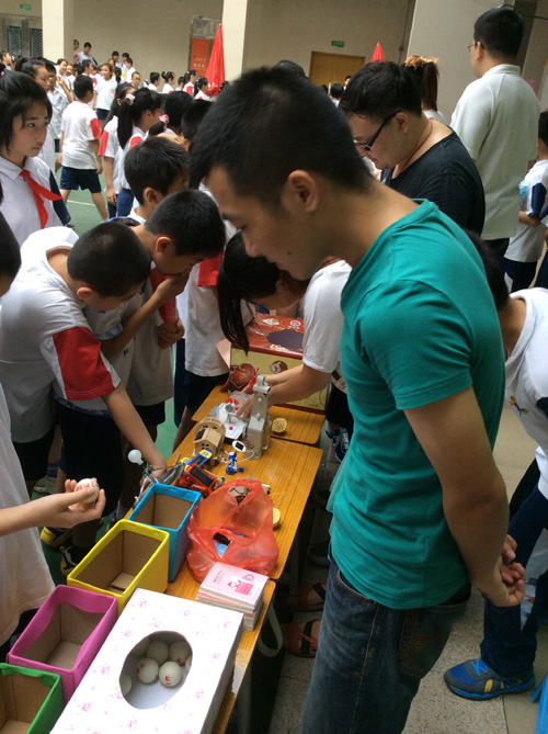 科普工作者在耐心的给小朋友们讲解垃圾分类知识