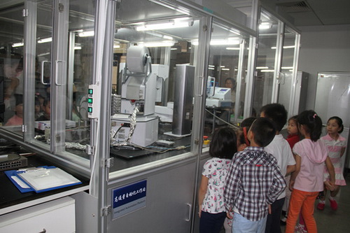 当孩子们透过显微镜,观察到小斑马鱼卵“蹦出来”的时候,他们高兴得“手舞足蹈”。在随后参观细胞分析技术平台和化学生物学平台的过程中,面对一台台高速运转的精密仪器,孩子们也丝毫不胆怯,提出了许多“高质量”的精彩问题。