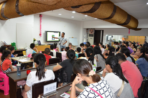 课堂由武汉植物园植物学博士楚海家主讲。楚海家博士以水生植物的概念和分类开讲,以荷花、睡莲和狐尾藻为例,分别介绍了挺水植物、浮水植物和沉水植物的形态特征。为
