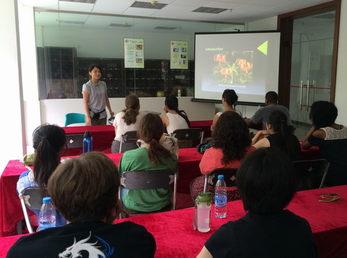 7月14日,来自美国国家奖学金项目组织20余名美国高中生来到中国科学院华南植物园,开展生态考察科普活动。一场以“与绿色同行 与科学为伍”的精彩科普活动在流利的全英文教学中,欢乐拉开帷幕。