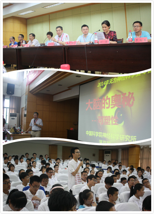 7月11日至14日,在中国科学院上海生命科学研究院神经科学研究所所长蒲慕明院士和党委书记王燕的带领下,神经所科普志愿者会同复旦大学、上海中学、位育高中共36人赴安徽无为县开展“2014年安徽无为神经科学夏令营”活动。来自无为县的无为中学、无为三中、无为四中、实验初中等15所中学近500名师生参加了此次夏令营。