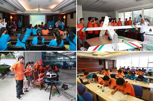 随后,全体营员还跟随成都山地所科技人员参观了实验室和无人机工作室。成都山地所无人机团队汪阳春老师带领同学们参观了无人机,详细介绍了无人机的主要结构和工作原理,并向他们介绍了山地所无人机在5.12汶川地震、舟曲特大泥石流、4.20芦山地震中的良好应用。营员们还利用无人机模拟器进行了实际操控体验,并学习了利用无人机影像制图技术。