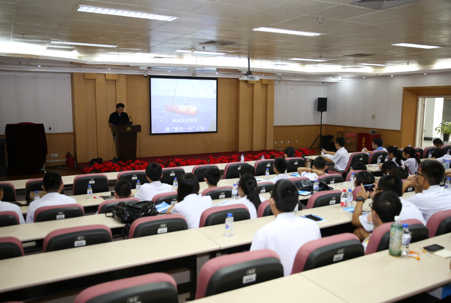 在夏令营开营大会上,沈阳自动化所人教处相关人员向营员们介绍了研究所基本情况和取得的辉煌成果、研究所主要研究方向、研究生教育特色、招生计划等,使营员们对沈阳自动化所基本情况和研究生教育有了深入的了解。开营大会后,由沈阳自动化所研制的我国首台6000米无人无缆潜器(AUV)“潜龙一号”总设计师徐会希副研究员为营员们做了《AUV发展现状暨“潜龙一号”介绍》的专题报告。他在报告中介绍了国内外AUV发展的历史与现状,重点介绍了沈阳自动化所研制的“潜龙一号”的发展历程和成功完成6000米级应用性试验任务的情况,回答了营员提出的各种问题,使营员们了解了科研过程、开阔了视野、扩充了知识面。