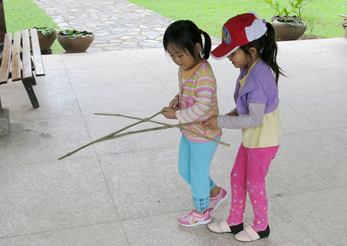 新的学年,一些小朋友跟科普老师还很陌生,为此,科普人员特地为小班和中班的孩子们准备了一个抛麻线团的游戏,帮助大家相互熟悉。通过游戏,孩子们的好奇心很快被调动起来。接下来,科普人员又让小朋友每人抽取一根颜色棒,并带上收集盒去寻找相应的色彩进行艺术创作。大班小朋友肢体的协调性更加灵活,科普人员则为他们准备了需要平衡能力的树枝游戏,培养他们的专注力和合作意识。热身之后,科普人员给孩子们展示了颜色棒和形状卡片,带领小朋友寻找各种颜色和形状的自然物搭建心中的秘密花园。通过活动,孩子们观察了入秋后大自然发生的变化,体验了大自然的色彩和形状美,也锻炼了自己的想象力和动手能力。