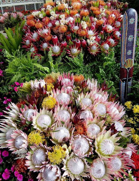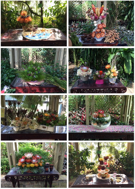 此次花展共展出各种帝王花属、针垫花属和木百合属植物品种多达36种,总量达6000株,全部从南非空运而来。除了前几届曾展出的帝王、白雪皇后、芭芭拉皇后等品种外,还有首次和大家见面的克莱尔、红宝石等品种,极具异域风情。而绚丽夺目的针垫花属(Leucospermum)植物——金粉、金樽等,俏丽耐看的木百合属(Leucadendron)植物——金冠、圆玫瑰等,飘洒俊逸的珊瑚草、咖啡芦竹等观叶植物,也各有各精彩。