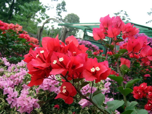 国内三角梅品种常以叶、枝和苞片特征和颜色进行命名。不同品种常按绿叶(黄叶、光叶、毛叶)和斑叶(外斑、内斑和杂斑:条斑、点斑、沙斑、网纹斑、麻斑,或暗斑、浸润斑,或金斑、银斑、粉斑),苞片(单瓣和重瓣)和苞片颜色(红、白、紫、粉等,或单色、双色,或有无其它颜色的浸润斑纹、点等)等来区分和辨别。此次花展活动将举办至11月底。
