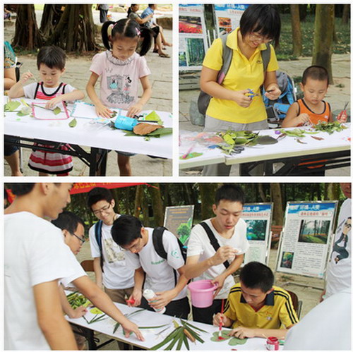 华南植物园充分发挥在植物科学、野鸟观察、奇妙夜观等广受欢迎的特色科普活动上的经验,将特色科普项目引入社区,广受小朋友的欢迎。彩叶拓印、种子陀螺比赛引导孩子们关注身边不起眼的植物,让孩子认识到随处可见的树叶,也能摇身一变,成为艺术的宠儿,创作出精美的粘贴画作品,认识到地上普通的植物种子通过简单制作也能变成孩子们手中的玩具——陀螺。鸟类彩绘创作给孩子广阔的想象空间,让孩子有机会为鸟儿创作彩色“衣裳”。活动现场,科普辅导员还为社区居民发放《植物园观鸟手册》、《温室世界植物奇观》等科普宣传读物,现场介绍养生保健植物、家居植物养护、登革热防治等科普知识。在华南植物园科普进社区活动中,居民踊跃参与且脸上洋溢着快乐与满意,许多市民希望华南植物园能多开展类似的科普惠民活动。