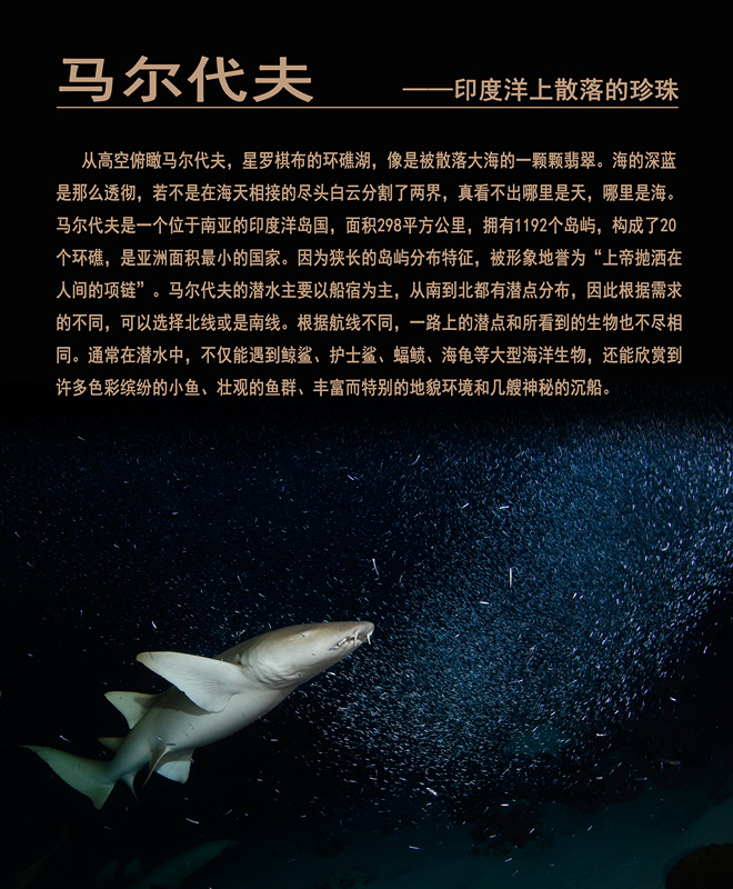 此次摄影展所甄选的112张作品,分别将主题聚焦在菲律宾、印度尼西亚、马尔代夫、马来西亚诗巴丹、加拉帕戈斯五地的海域。作品将世界上最美丽的海洋生物展示在世人面前。从微小的糠虾到巨大的鲸鲨;从美丽的珊瑚、海葵,到自由生活的水母;从伶俐聪明的海狮到翱翔在海面上空的各种海鸟。摄影师从多个角度展现了海洋的自然环境和生物世界的绚丽多姿,他用独特的艺术视角诠释了海洋生物多样性的繁杂和炫酷,更让人们领略到了一个真实的、几乎被遗忘的海洋生物世界。更带给人们视觉的盛宴和心灵的畅游。