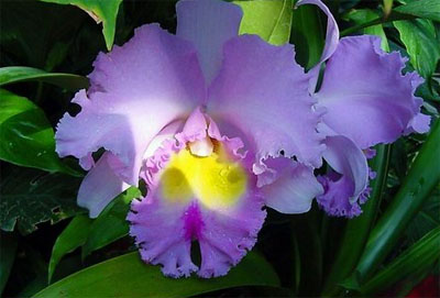 卡特兰(cattleya hybrida)又名嘉德丽亚兰,属兰科附生兰类,原产于美洲热带和亚热带地区,它与蝴蝶兰、大花蕙兰、石斛兰并称四大洋兰。该属原生种有60多个种,经过人们近200年的栽培育种,现在的园艺品种十分繁多。为多年生草本植物,终年常绿,植株具有1—3片革质厚叶,是贮存水分和养分的组织。花单朵或数朵,着生于假鳞茎顶端。花萼与花瓣相似,唇瓣3裂,基部包围雄蕊下方,中裂片伸展而显著。先端尖尖的萼片3枚,竖直着延伸为此花的最大特征。因其花大、雍容华丽,花色娇艳多变,花朵芳香馥郁,在国际上有“洋兰之王”、“兰之王后”的美称。