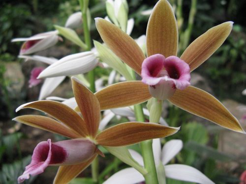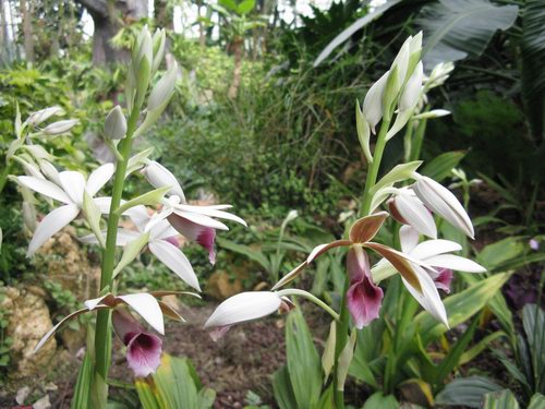 鹤顶兰属(Phaius)约有50种,我国有8种,全部可供观赏。1778年,欧洲人从中国引入第一株鹤顶兰,经200多年连续不断的研究和培育,现栽培品种已十分丰富。此外,温室里还栽种有此属的黄花鹤顶兰(Phaius flavus (Bl.)Lindl.),叶具黄色斑点,花淡黄色,不完全开放,唇瓣具3—4条褐色条纹,也有较高的观赏价值。