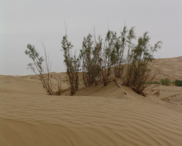分布在降水不到50毫米塔克拉玛干沙漠的沙生柽柳