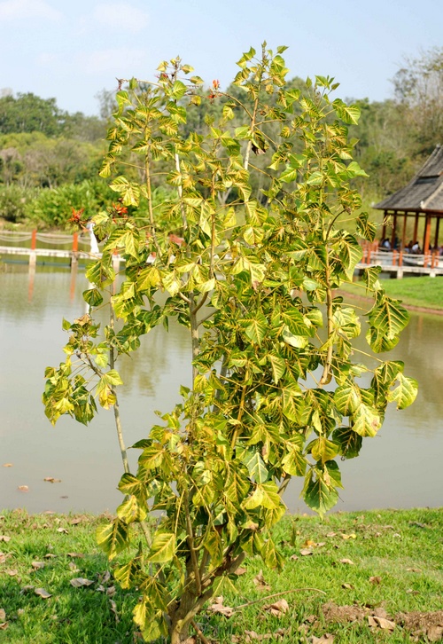 金脉刺桐原产热带亚洲,是一种优良的庭园和行道树种及盆栽树,花期可观花观叶,不开花时也是一种优良的观叶植物。