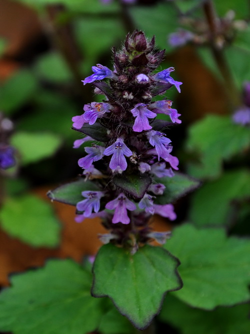 筋骨草(Ajuga decumbens ),别名散血草、金疮小草,属唇形科(Lamiaceae)筋骨草属,为多年生草本植物,高25—40cm,茎四棱形,花期长,3-7月,花紫色,密集排列成顶生假穗状花序,花小而量多,非常美丽,是华南植物园常见的野生乡土花卉植物。同时也是一种重要的药用植物,具有镇咳、祛痰、平喘等功效。