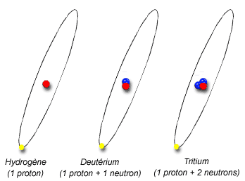 -- 氘(deuténium):1个质子,1个中子,1个电子