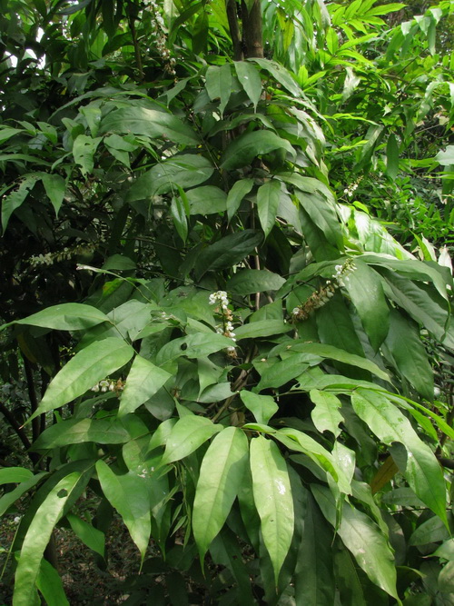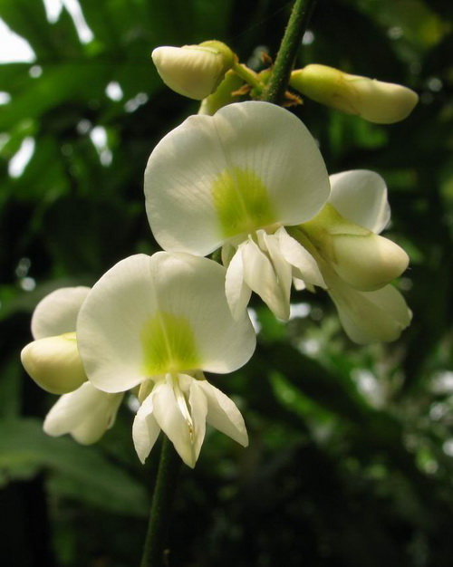 在广州第一村暨地带性植被园的山坡疏林中,一串串白色的蝶形小花长在一片绿叶丛中,虽然没有鲜艳夺目的色彩而不太引人注意,但长长的花序和密集的花朵显得精致小巧,这就是从云南西双版纳引进的思茅崖豆(Millettia leptobotrya Dunn),又称为窄序崖豆藤。目前正处于盛花季节,也是经过多年种植后在我园的首次开花,可谓别具意义。