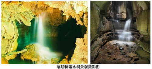 喀斯特溶洞是地下水沿可溶性岩体的层面、节理或裂隙进行溶蚀扩大而成的空洞,在喀斯特溶洞发展过程中,除了以溶蚀作用为主外,还伴有水利、机械等其他的侵蚀作用及生物作用。我国著名的喀斯特溶洞包括贵州的龙宫、桂林的芦笛岩等。溶洞中由于洞顶渗入的地下水中CO2含量较高,对可溶性石灰岩具有较强的溶蚀力,当这种溶液渗至洞内顶部出露形成水滴时,由于表面张力作用,水滴迅速释放出CO2形成碳酸钙薄膜沉积,随着不断渗流、沉积,洞顶形成具有空心的管状沉积物,直径一般小于1-2cm,成为石管。石管外壁也有渗滴水流时,石管就不断加大而成乳状沉积物,即石钟乳。当水滴从石钟乳上跌落至洞底时,变成许多小水珠或流动的水膜,这样就促进了水滴中CO2的散逸,而在洞底产生碳酸钙堆积,堆积物横切面没有中央通道,但具有同心圆结构,随水滴跌落不断由洞底往上增高形成锥状、塔状及盘状的沉积物,即石笋。由于重力作用,石钟乳和石笋相对增长,直至两者连接而成的柱状体,即石柱,随着洞顶下渗的水溶液继续沿石柱表面堆积,石柱不断加粗。含碳酸钙的水溶液在洞壁上漫流时,因CO2迅速逸散而产生片状和层状的碳酸钙堆积,即石幔,其表面具有弯曲的流纹,高度可达数十米,十分壮观。