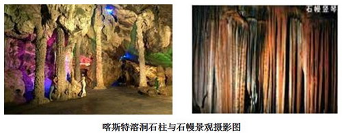 喀斯特溶洞、石钟乳、石笋、石柱及石幔