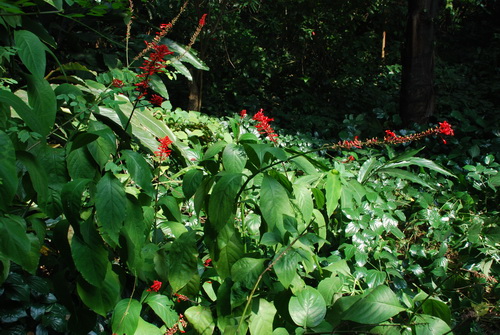 鸡冠爵床(Odontonema tubaeforme (Bertol.) Kuntze),又名红楼花,一串红。属爵床科植物。原产中美洲,现广州、深圳、海南等华南地区广为栽培,是一种很好的庭院绿化、观赏植物。