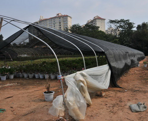根据花蕾的情况用不同的设备——盖遮阴网